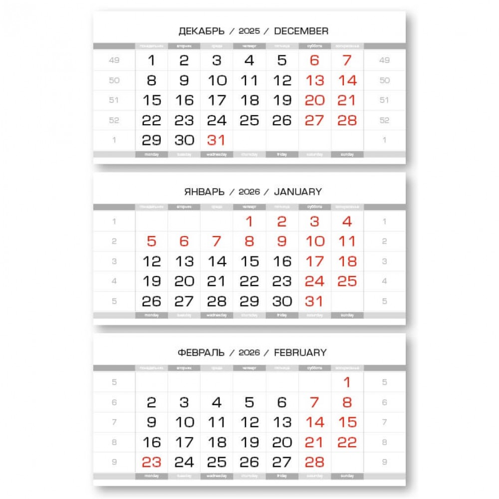 Календарные блоки ПРОИЗВ серебристо-белые, резаные, красные субботы, мелованные, 50 комплектов