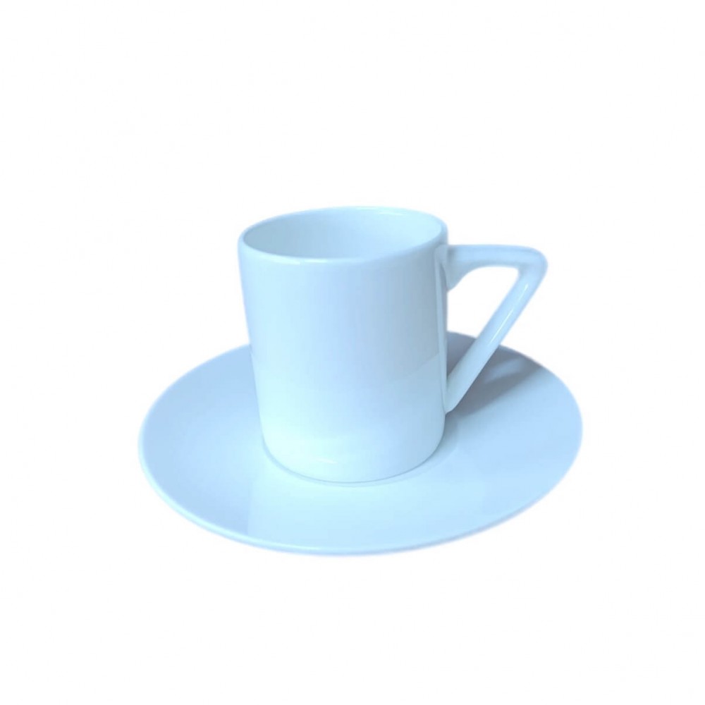 Чайная пара в коллекции «Аура» выполнена из белоснежного фарфора высокого качества. Форма чашки – лаконичный конус, плавно переходящий в квадратное основание.